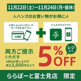 本日最終日!レジにて「三井ショッピングパークポイントカードまたはアプリ」と「ハンズクラブアプリ」の両方をお会計時にご提示いただくと、税込3,000…...