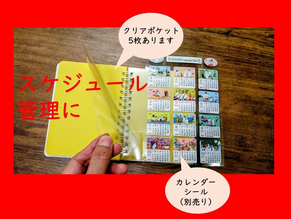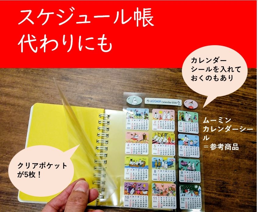 クリアポケットが5枚ついているので、カレンダーシールを入れておけば